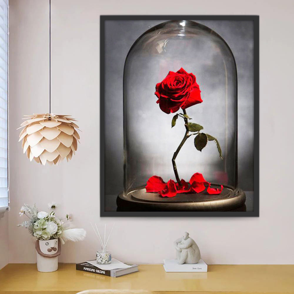 Rode Roos in een Glazen Kap Schilderen op Nummers