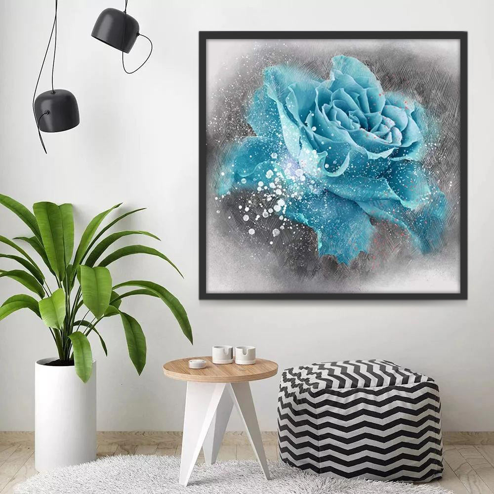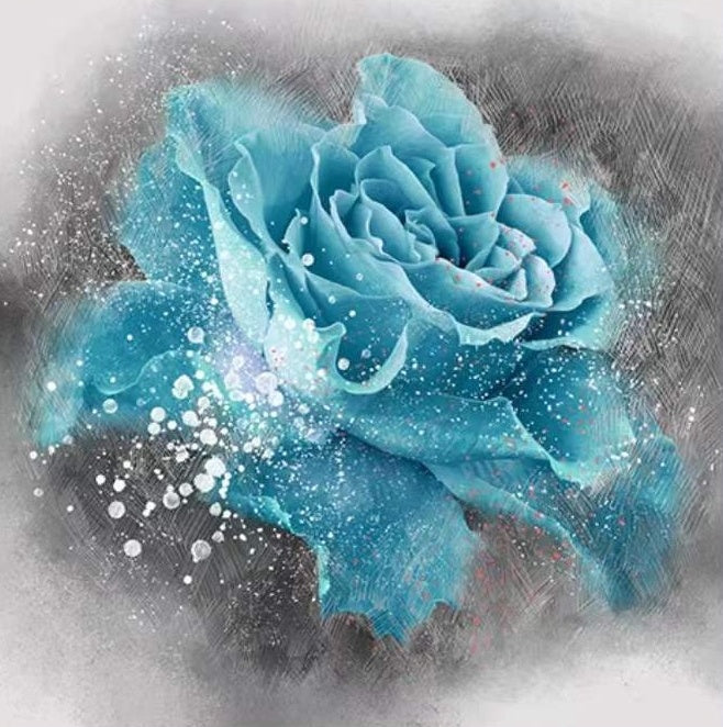 Blauwe Roos met Druppels op Grijze Achtergrond Schilderen op Nummers