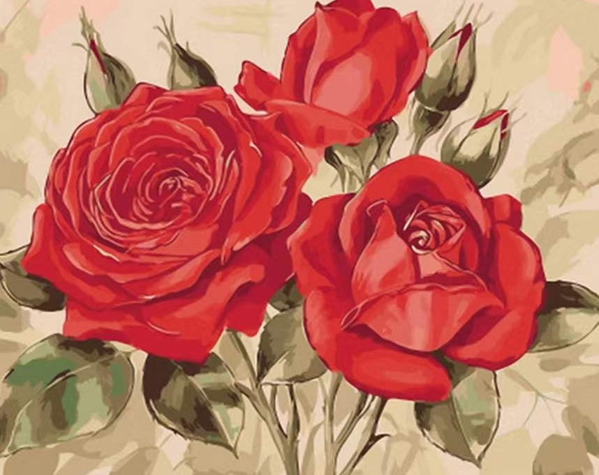 Cartoon Grote Rode Bloemen Schilderen op Nummers