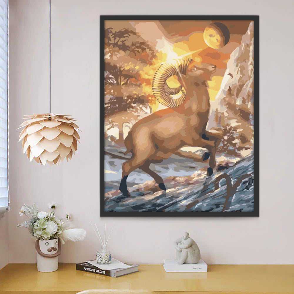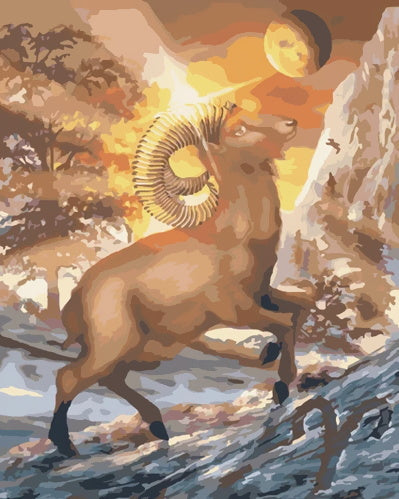 dikhoornschapen beklimmen besneeuwde bergen Schilderen op Nummers