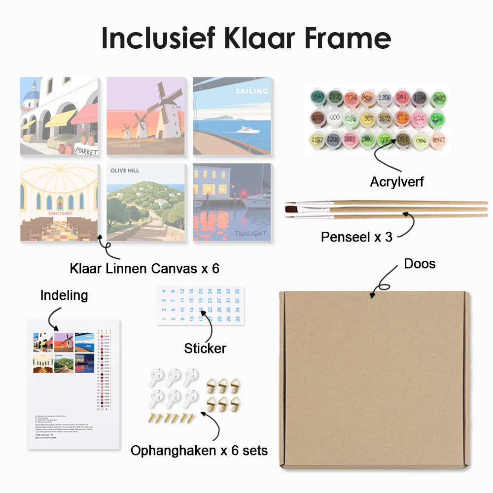 Stadsgezichten van Verschillende Steden 6 Stuks Mini Schilderen op Nummers