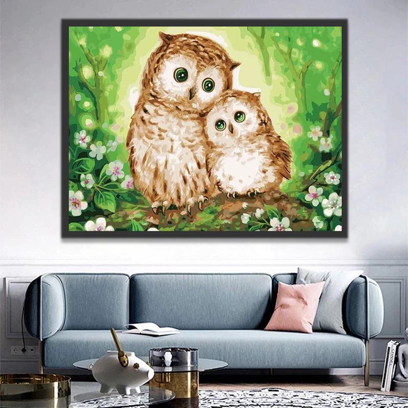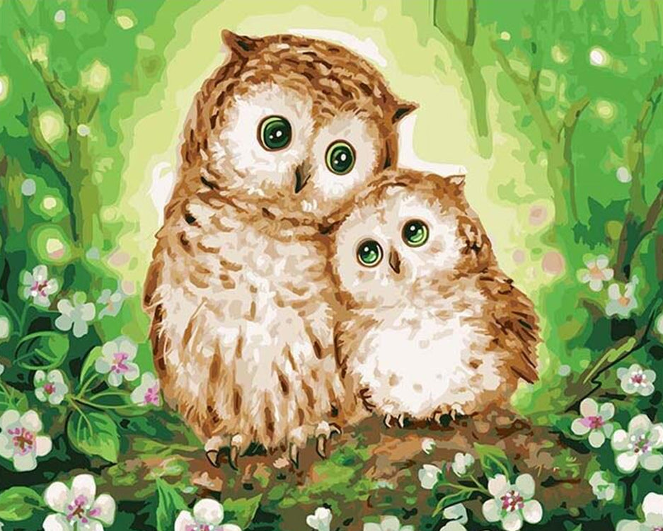 Uil Moeder en Kind in het Bos Schilderen op Nummers