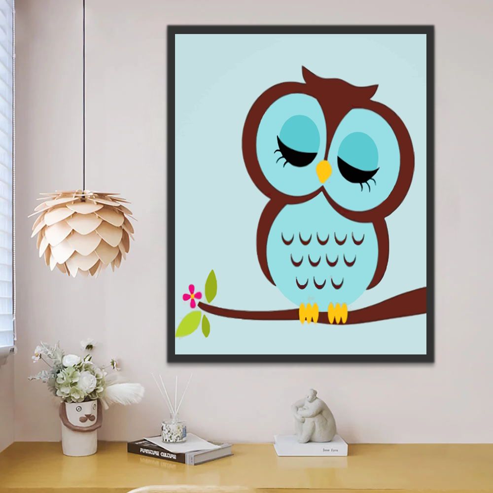 Blauwe Uil met Gesloten Ogen Schilderen op Nummers
