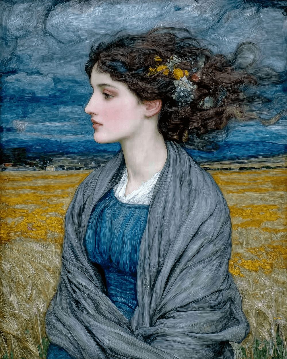 Van Gogh-Stijl – Vrouw in Blauwe Jurk op het Veld Schilderen op Nummers
