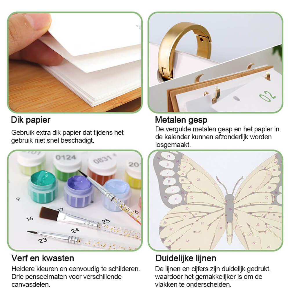 2026 Bureaukalender Schilderen op Nummers | Kleurrijke Vlinderspecimens