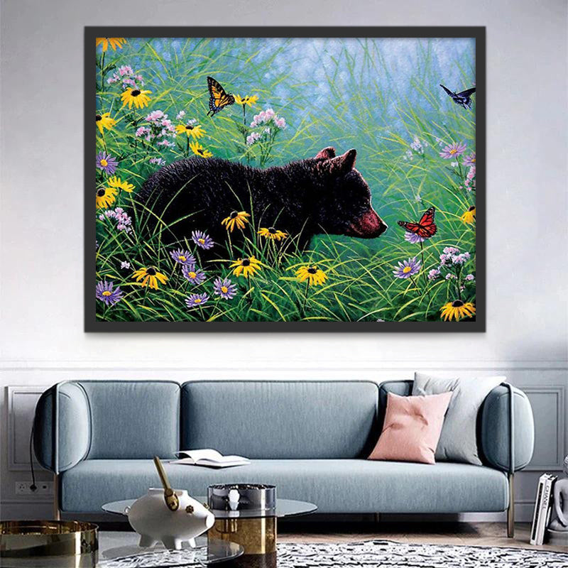 Zwarte Beer en Vlinders in Bloemen Schilderen op Nummers