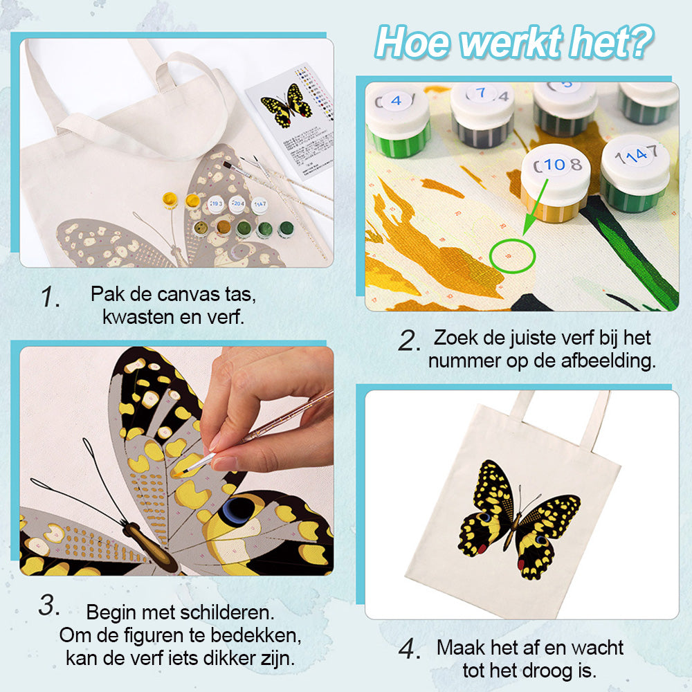 Een Zwarte en Gouden Vlinder Canvas Tote Bag Schilderen op Nummers