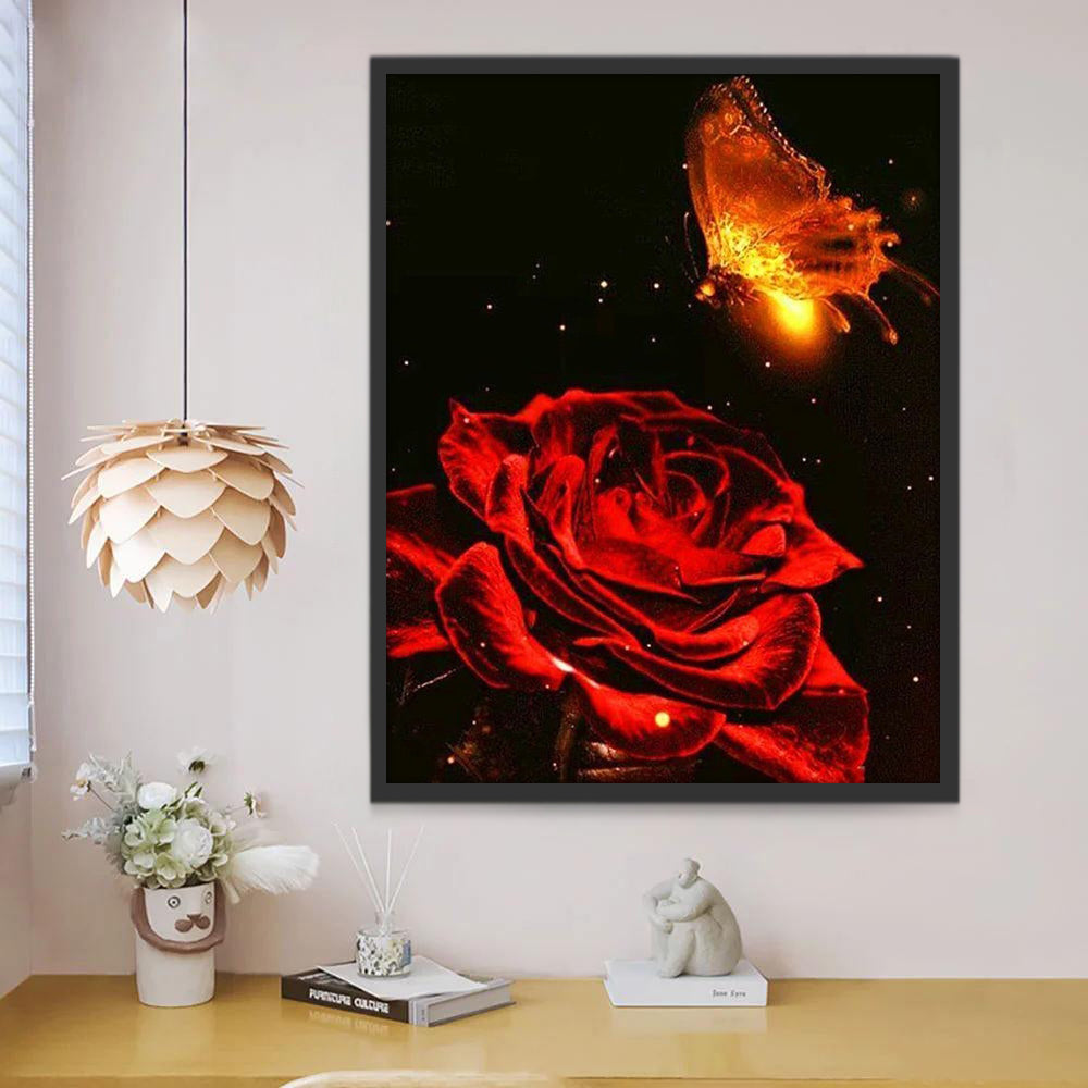 Rode Roos met Vlinder Schilderen op Nummers