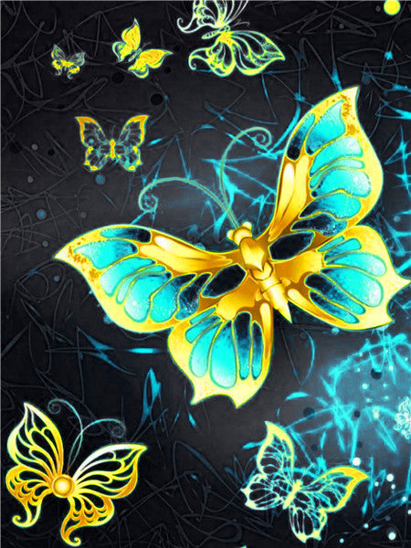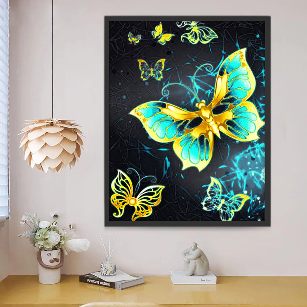 Blauwe en Gouden Vlinders Schilderen op Nummers