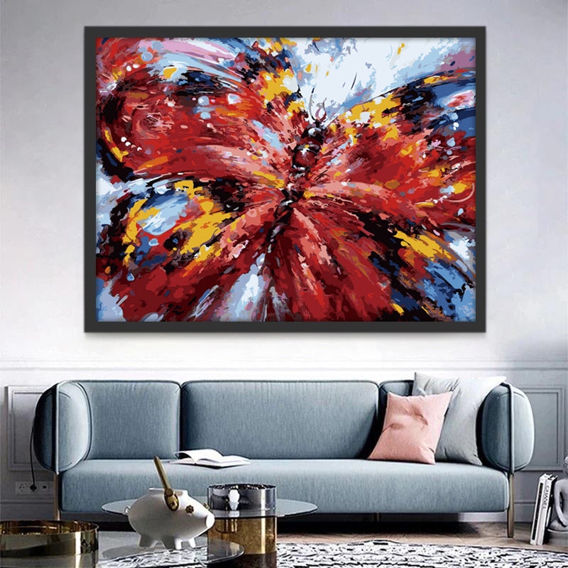 Olieverfschilderij Stijl Rode Vlinder Schilderen op Nummers