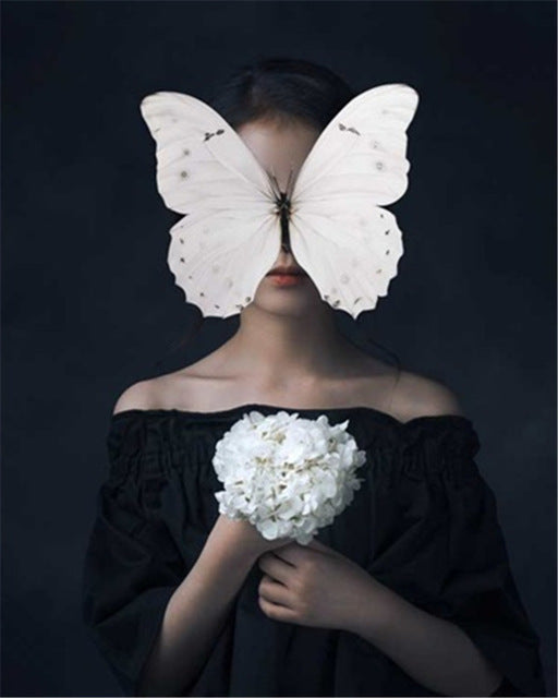 Vrouw en Witte Vlinder in het Donker Schilderen op Nummers
