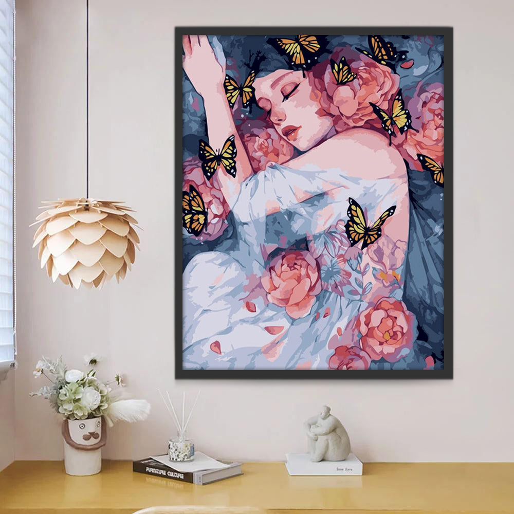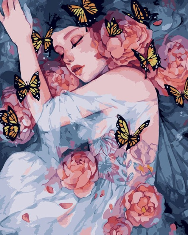 Vlinders en Slapende Vrouw Schilderen op Nummers