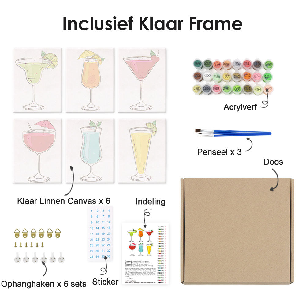 Cocktails met Verschillende Smaken 6 Stuks Mini Schilderen op Nummers