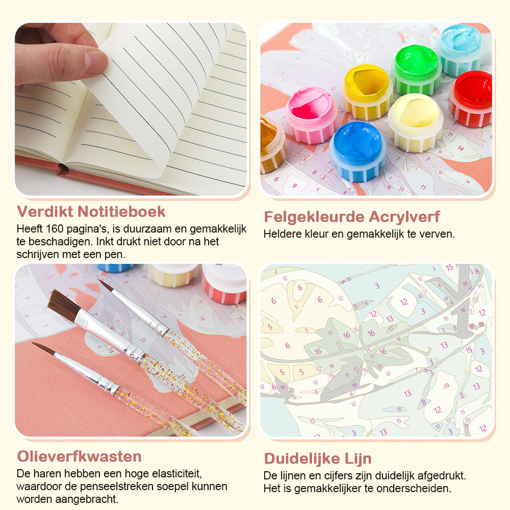 Gemakkelijk te schilderen - De set van Schilderen op nummers is gemakkelijk te gebruiken. Elk deel van het canvasdoek is genummerd en komt overeen met een kleur. Volg de instructies, schilder op nummer en maak de afbeelding af.