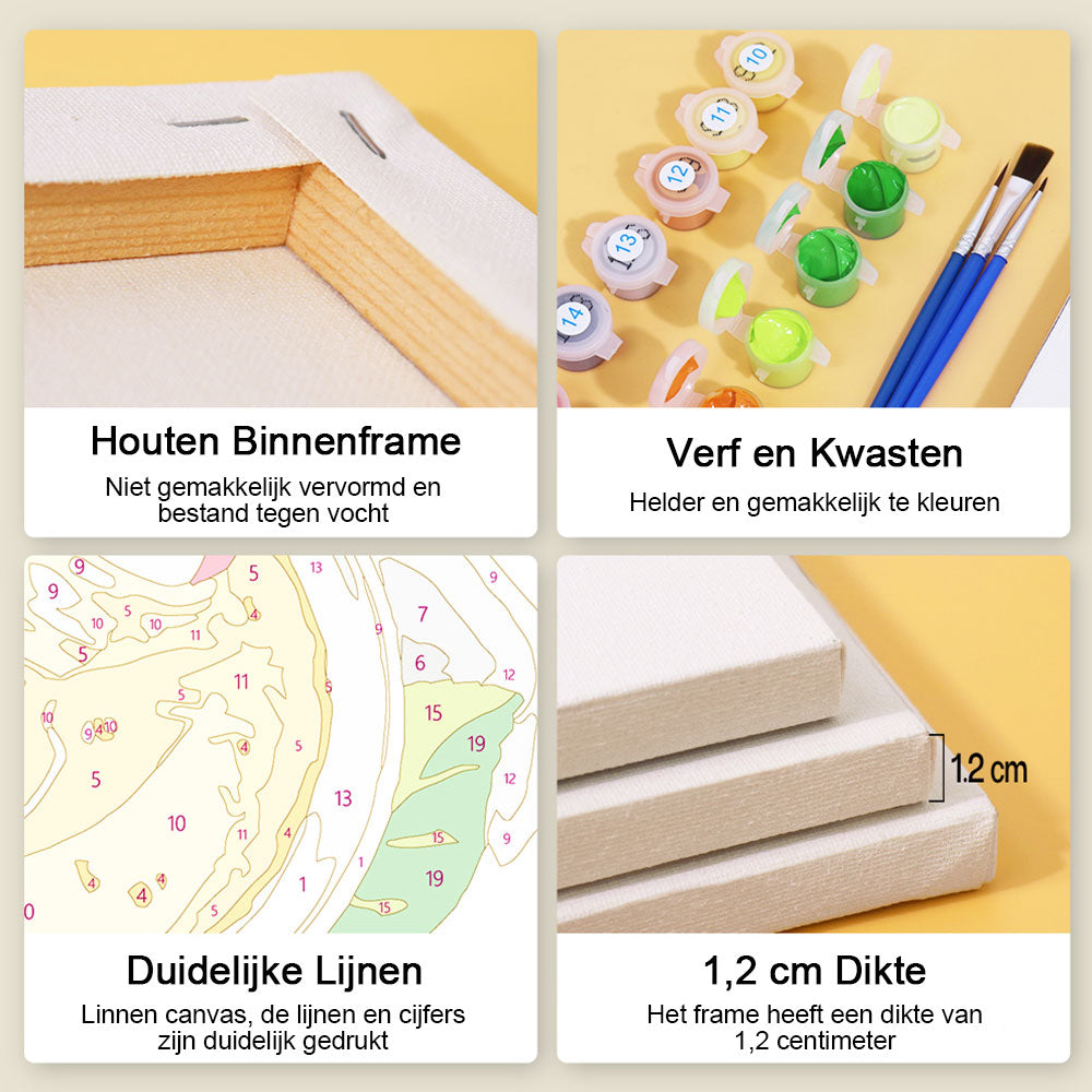 Gemakkelijk te schilderen - De set van Schilderen op nummers is gemakkelijk te gebruiken. Elk deel van het canvasdoek is genummerd en komt overeen met een kleur. Volg de instructies, schilder op nummer en maak de afbeelding af.