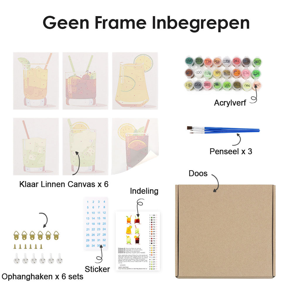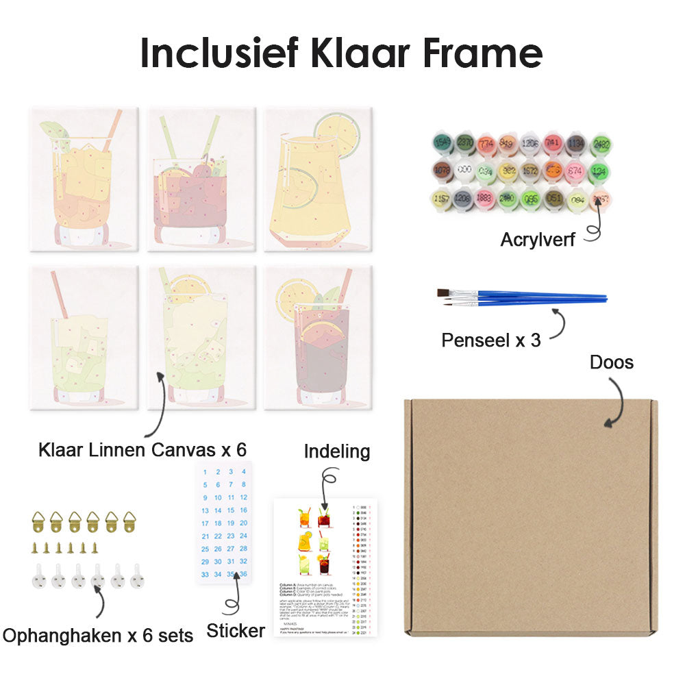 Ijskoude Drankjes 6 Stuks Mini Schilderen op Nummers