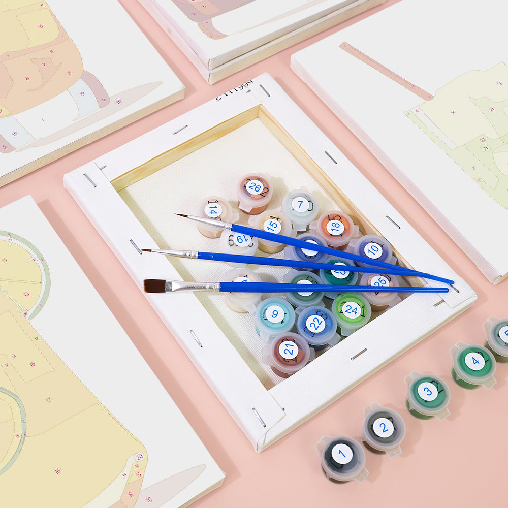 Schilderen op nummers is eenvoudig en iedereen kan het doen. Elk gebied op het canvasdoek is genummerd en komt overeen met een specifieke kleur. U hoeft de kleuren niet te mengen. U gebruikt gewoon het penseel om de juiste gebieden in te kleuren. U kunt ook zelf de volgorde van de kleuren bepalen. Uiteindelijk maak u uw eigen kunstwerk dat u met trots aan uw familie en vrienden kunt laten zien.