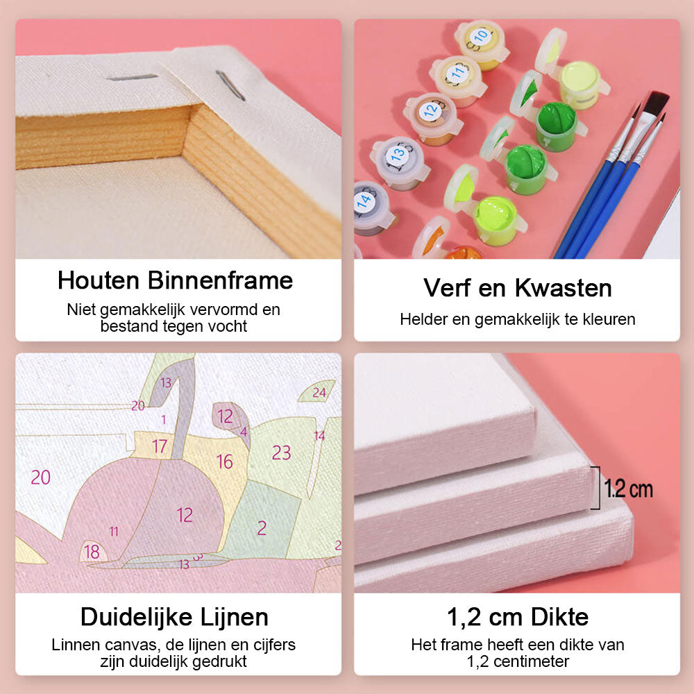 Gemakkelijk te schilderen - De set van Schilderen op nummers is gemakkelijk te gebruiken. Elk deel van het canvasdoek is genummerd en komt overeen met een kleur. Volg de instructies, schilder op nummer en maak de afbeelding af.