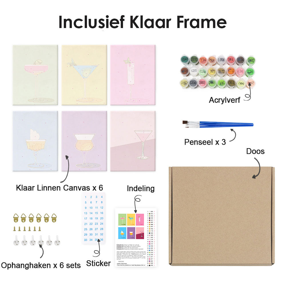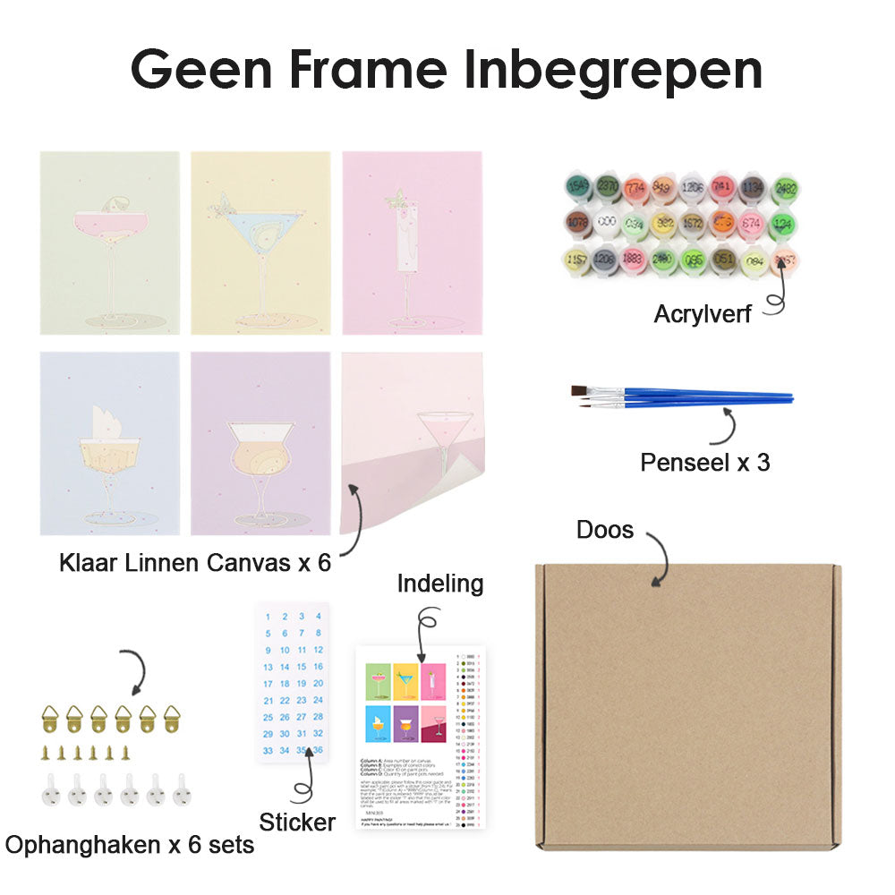 Kleurrijke Cocktails 6 Stuks Mini Schilderen op Nummers