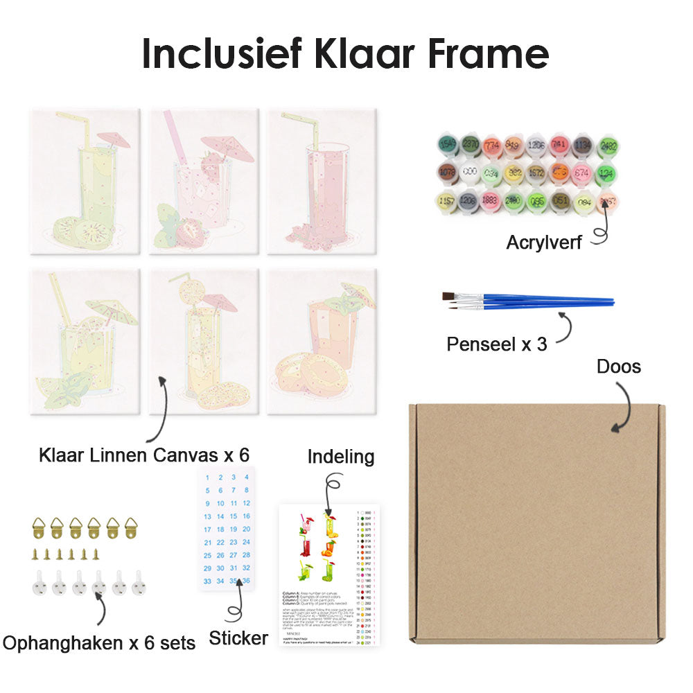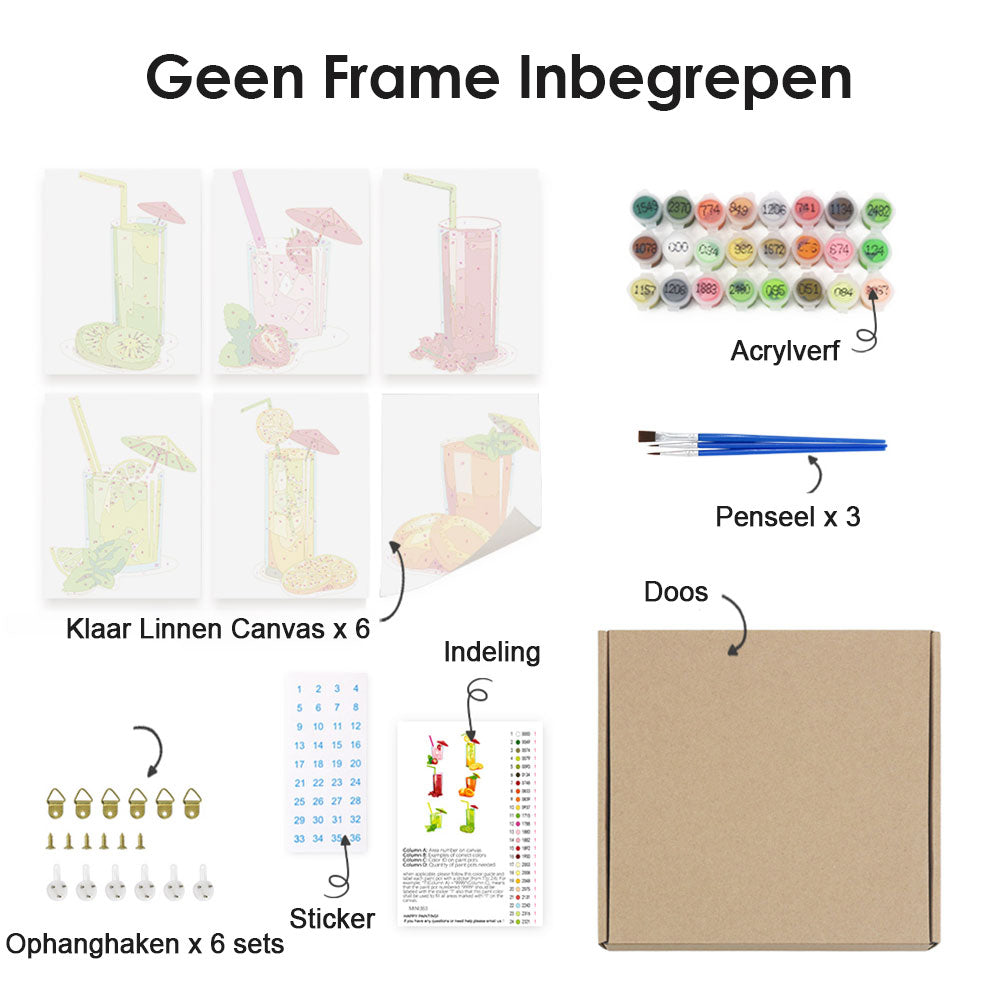 Versgeperst Fruitsap 6 Stuks Mini Schilderen op Nummers