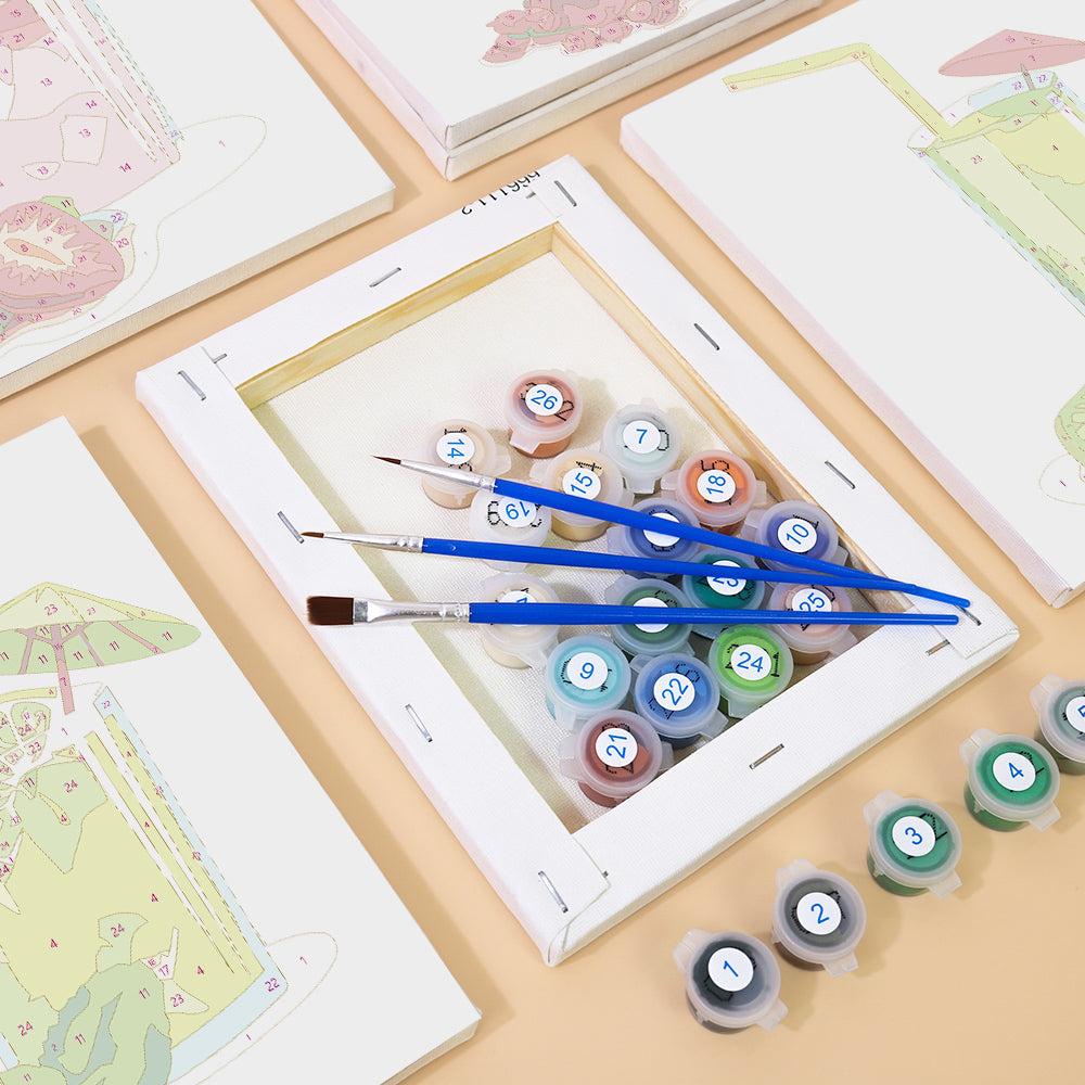 Schilderen op nummers is eenvoudig en iedereen kan het doen. Elk gebied op het canvasdoek is genummerd en komt overeen met een specifieke kleur. U hoeft de kleuren niet te mengen. U gebruikt gewoon het penseel om de juiste gebieden in te kleuren. U kunt ook zelf de volgorde van de kleuren bepalen. Uiteindelijk maak u uw eigen kunstwerk dat u met trots aan uw familie en vrienden kunt laten zien.