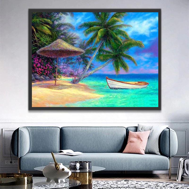 Rustgevende Sfeer van het Tropische Strand Schilderen op Nummers