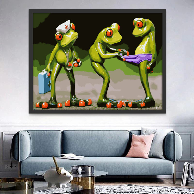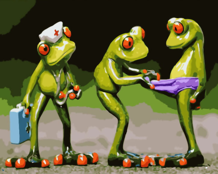 Dokter Kikker en de kikkers die de dokter komen bezoeken Schilderen op Nummers
