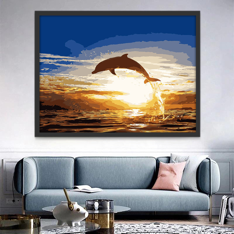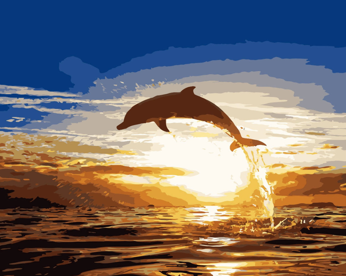 Dolfijn bij Zonsondergang Schilderen op Nummers