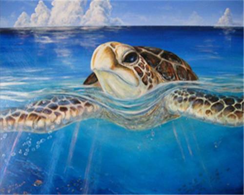 Zeeschildpad aan de Oppervlakte Schilderen op Nummers