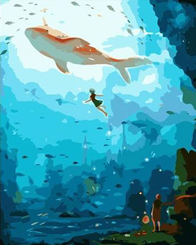 Walvis en Meisje in de Zee Schilderen op Nummers