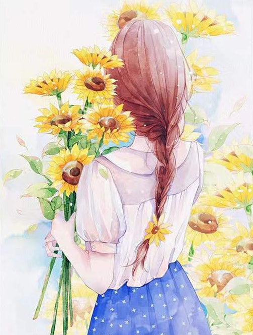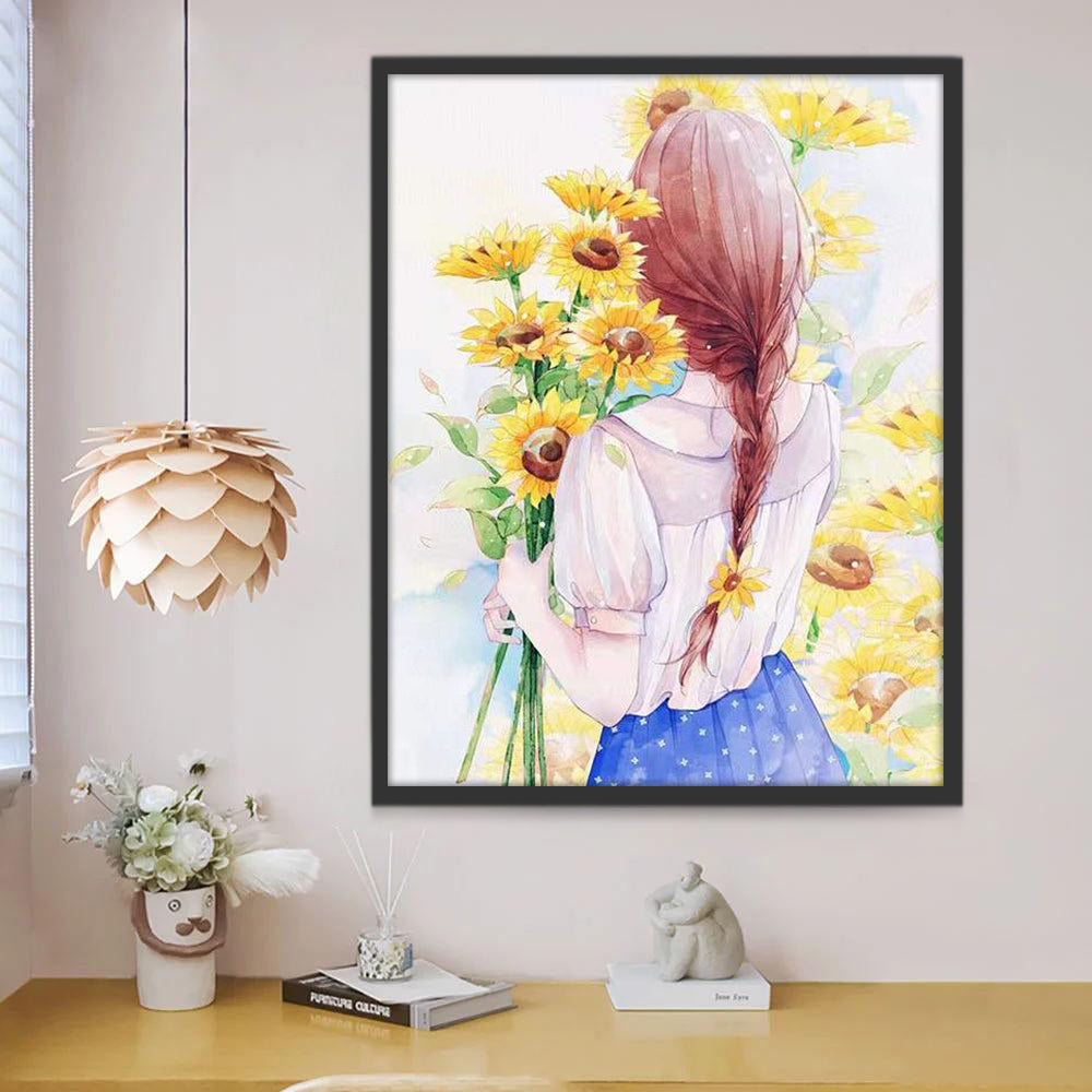 Meisje tussen Gouden Zonnewenden Schilderen op Nummers