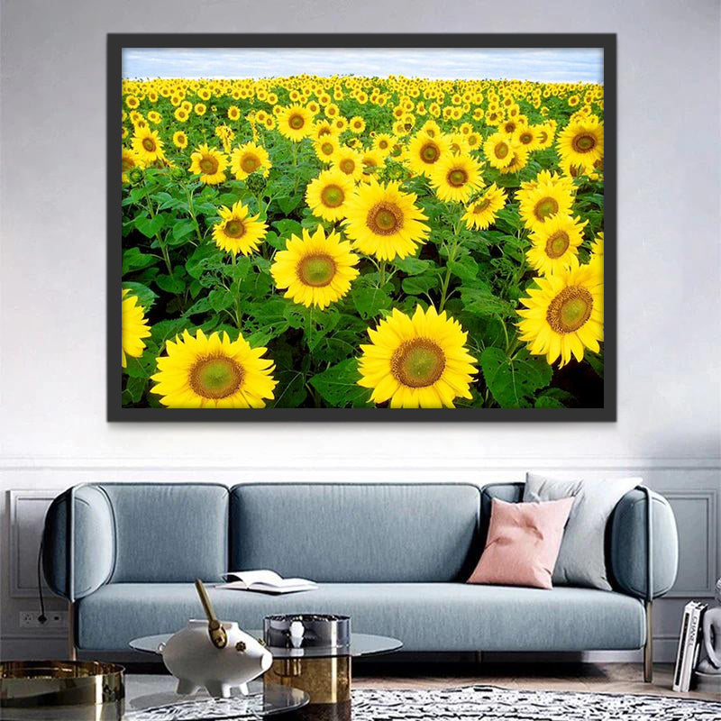 Zonnebloemvelden aan de Rivieroever Schilderen op Nummers
