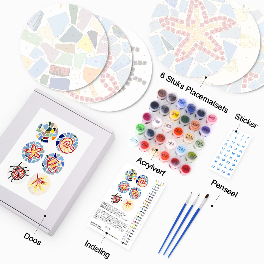 6 Stuks Kleurenblok Insecten Placemats Schilderen op Nummers
