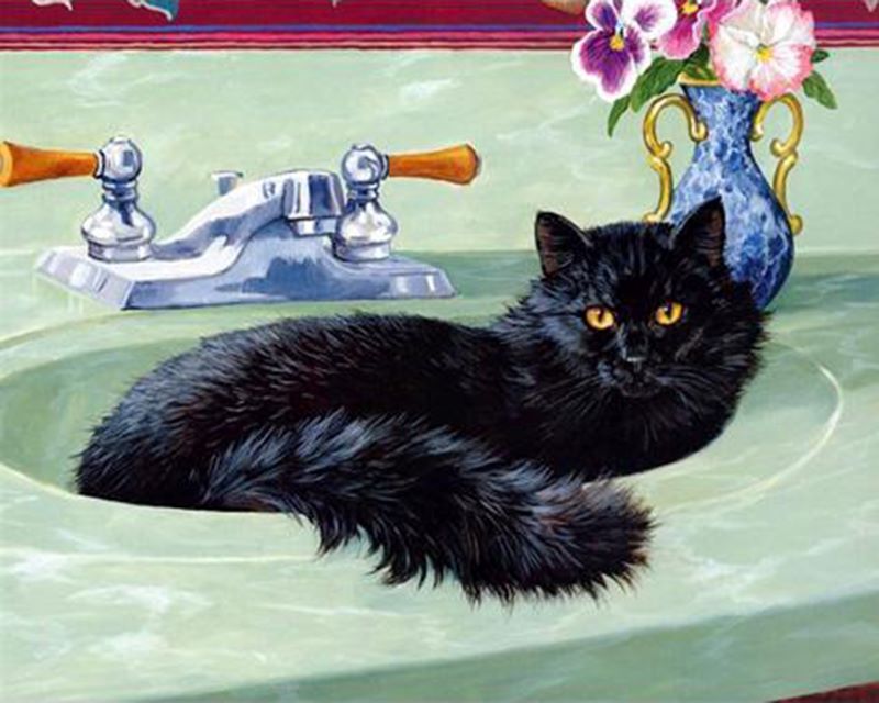 Zwarte Kat Liggend in een Zwembad Schilderen op Nummers