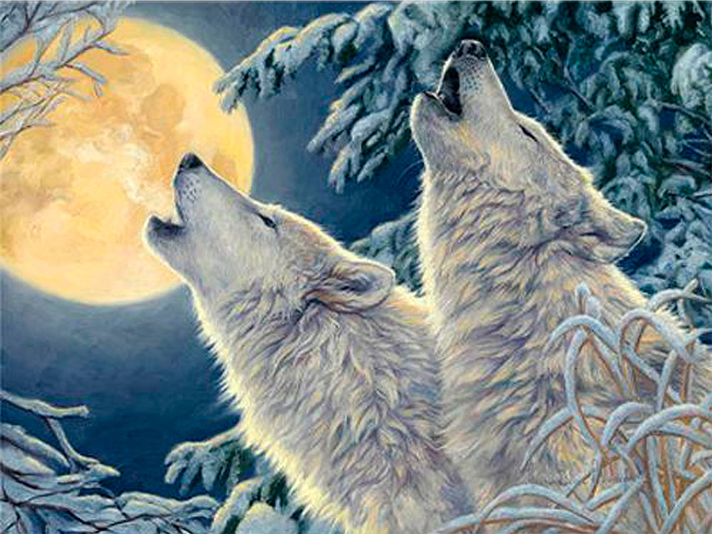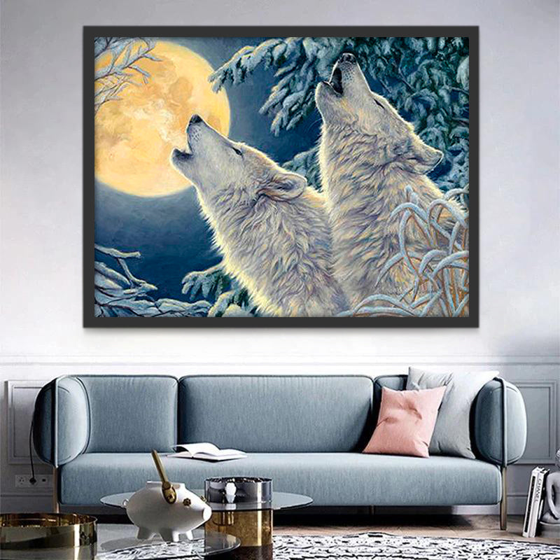 Twee Wolven Huilen in het Maanlicht Schilderen op Nummers