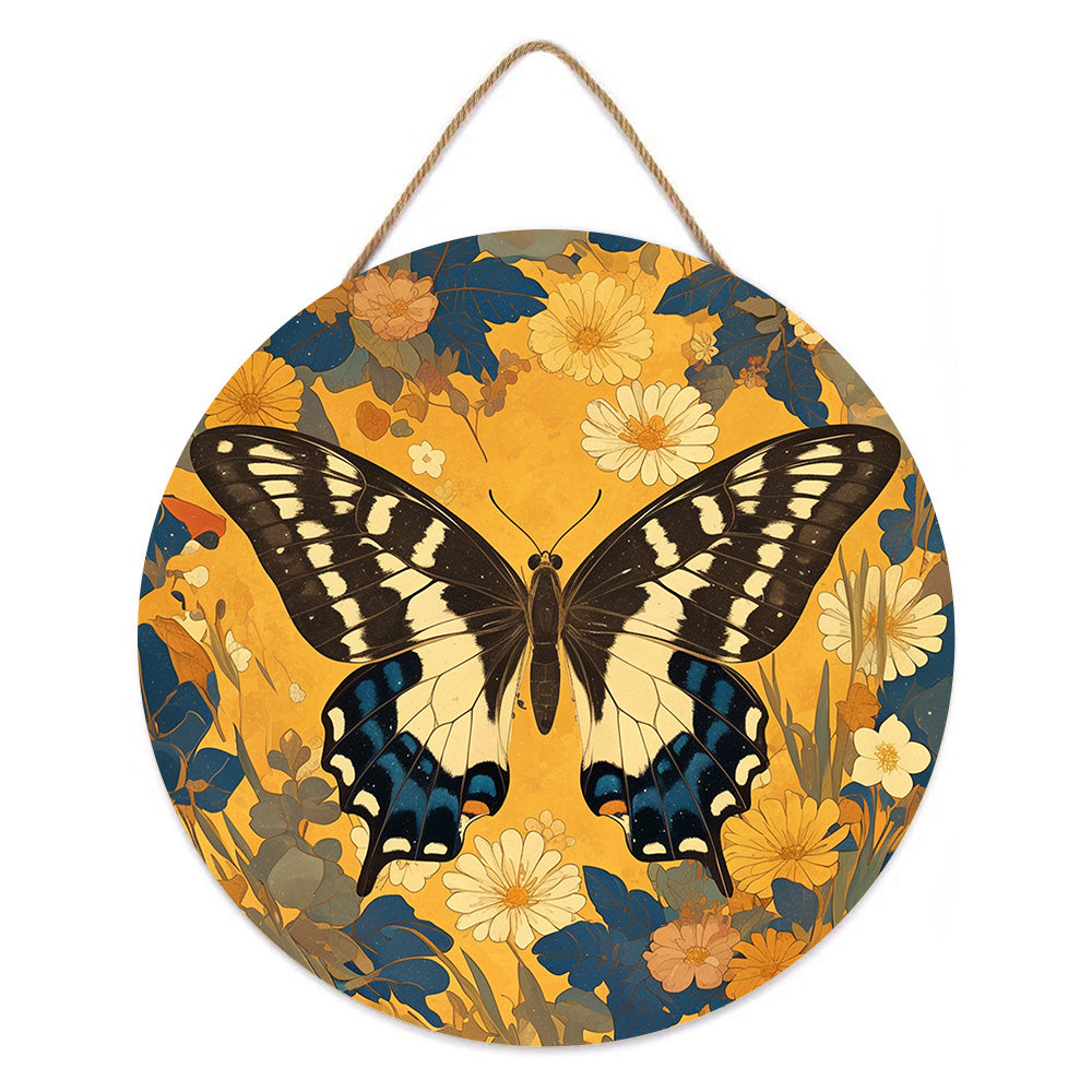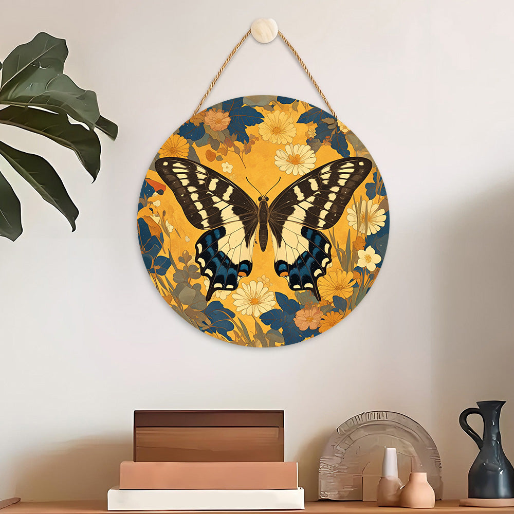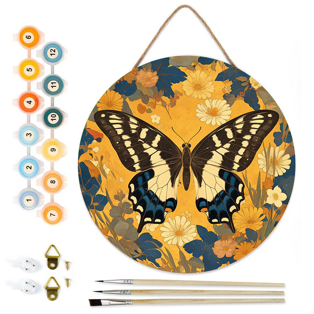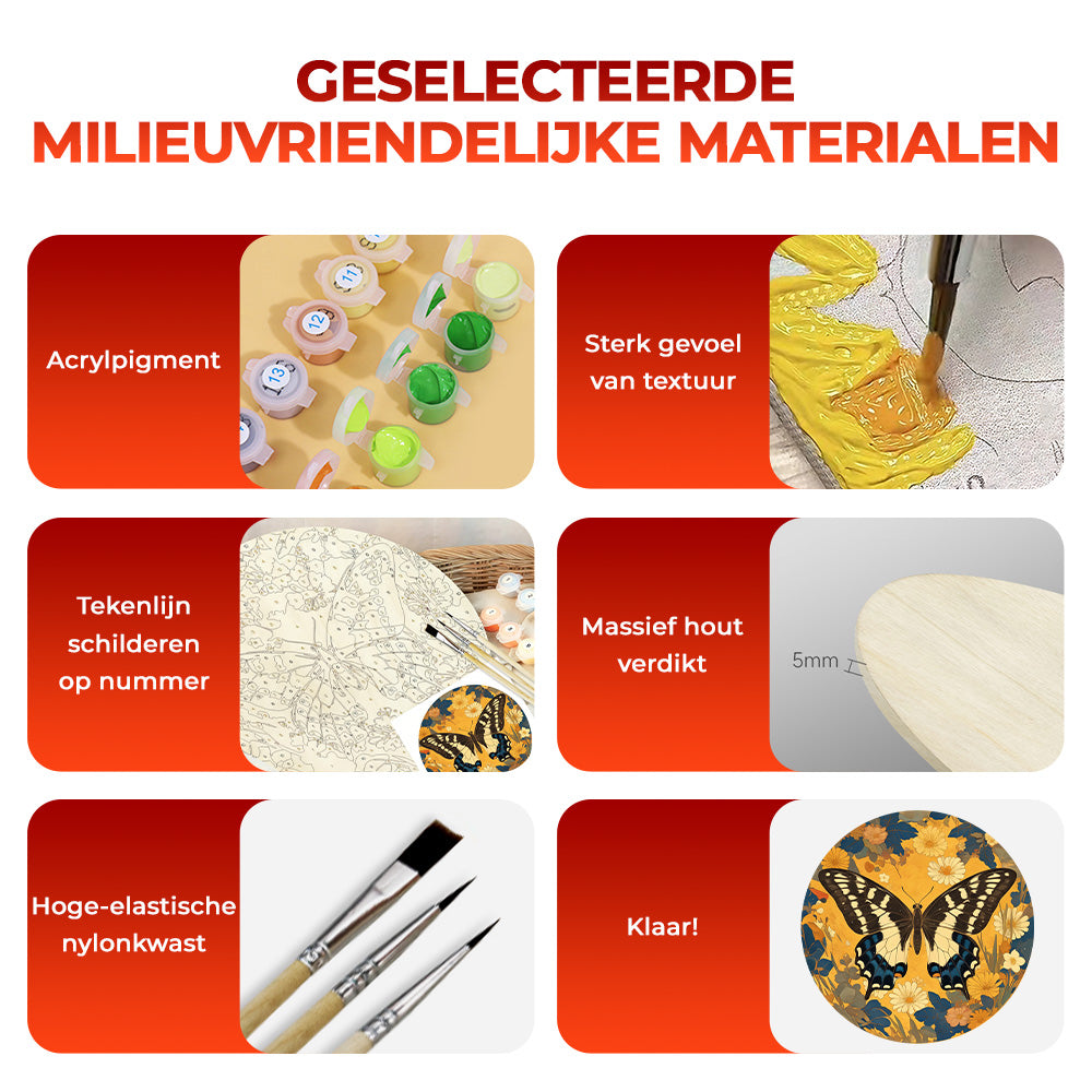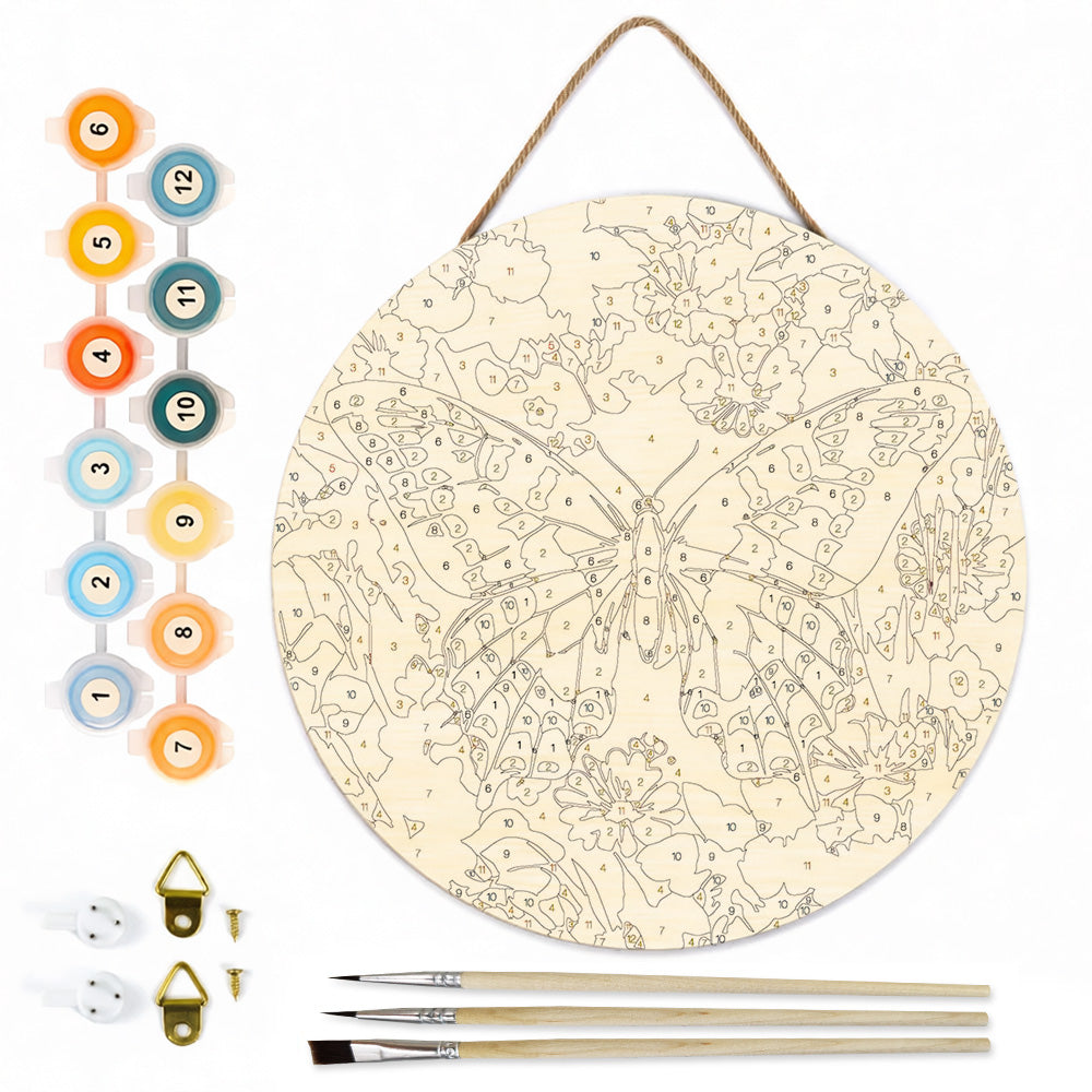 Houtschijf Schilderen op Nummers - Herfst Vlinder en Bloemen