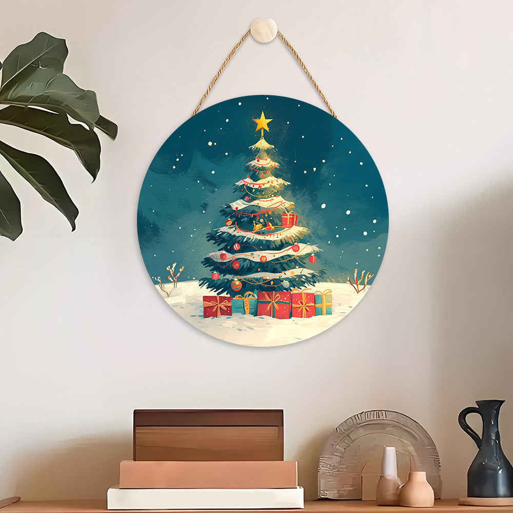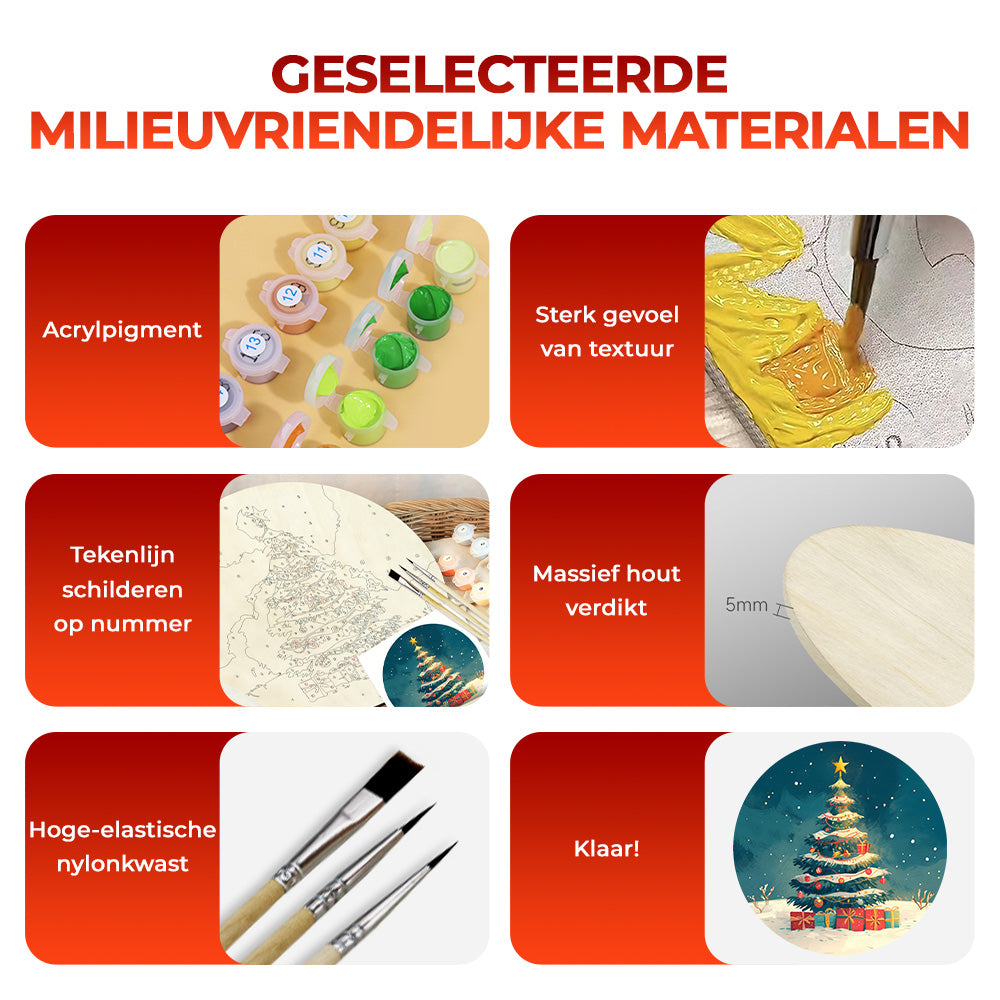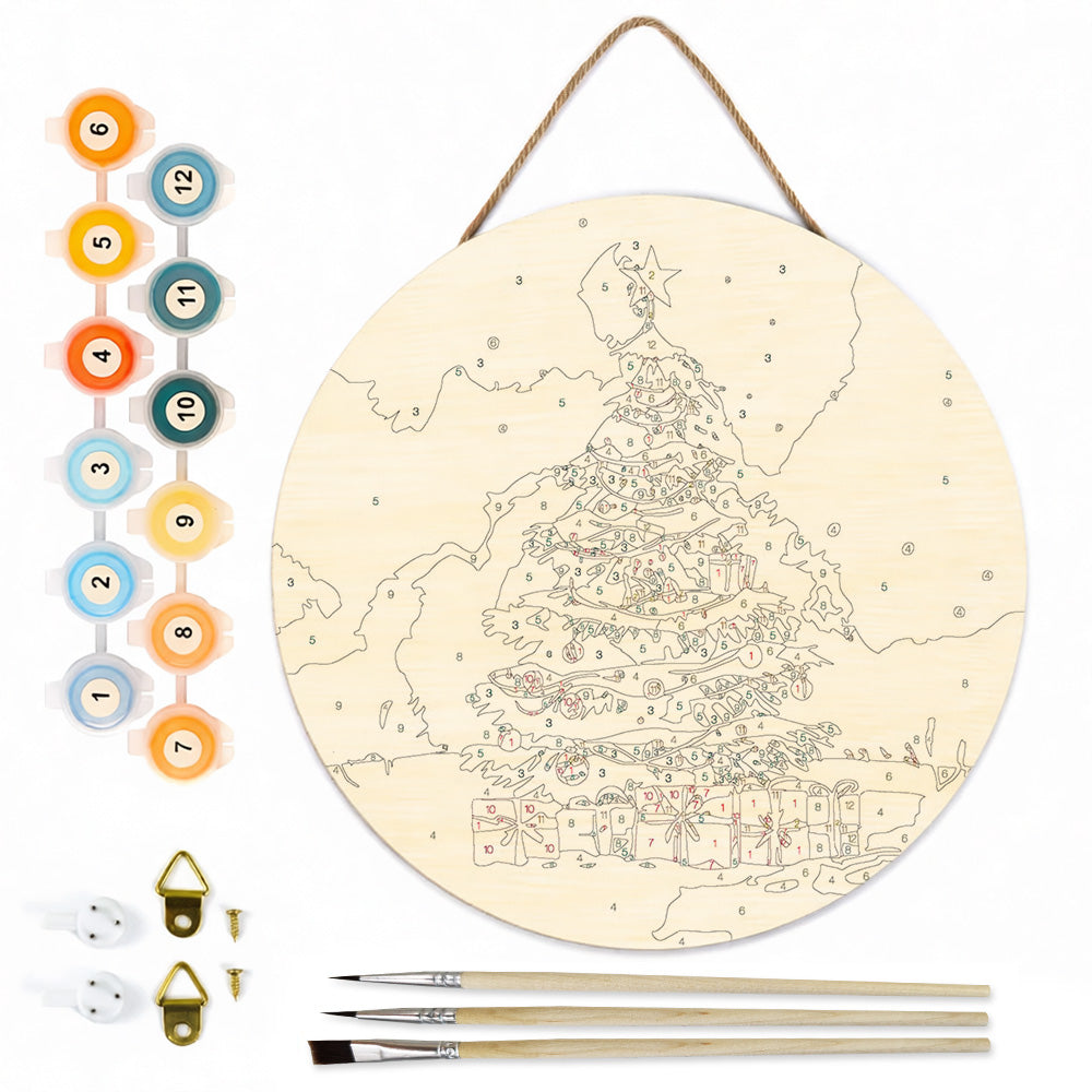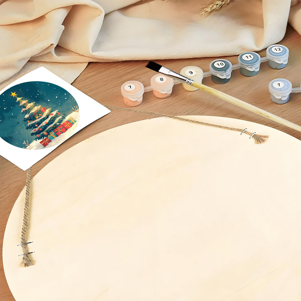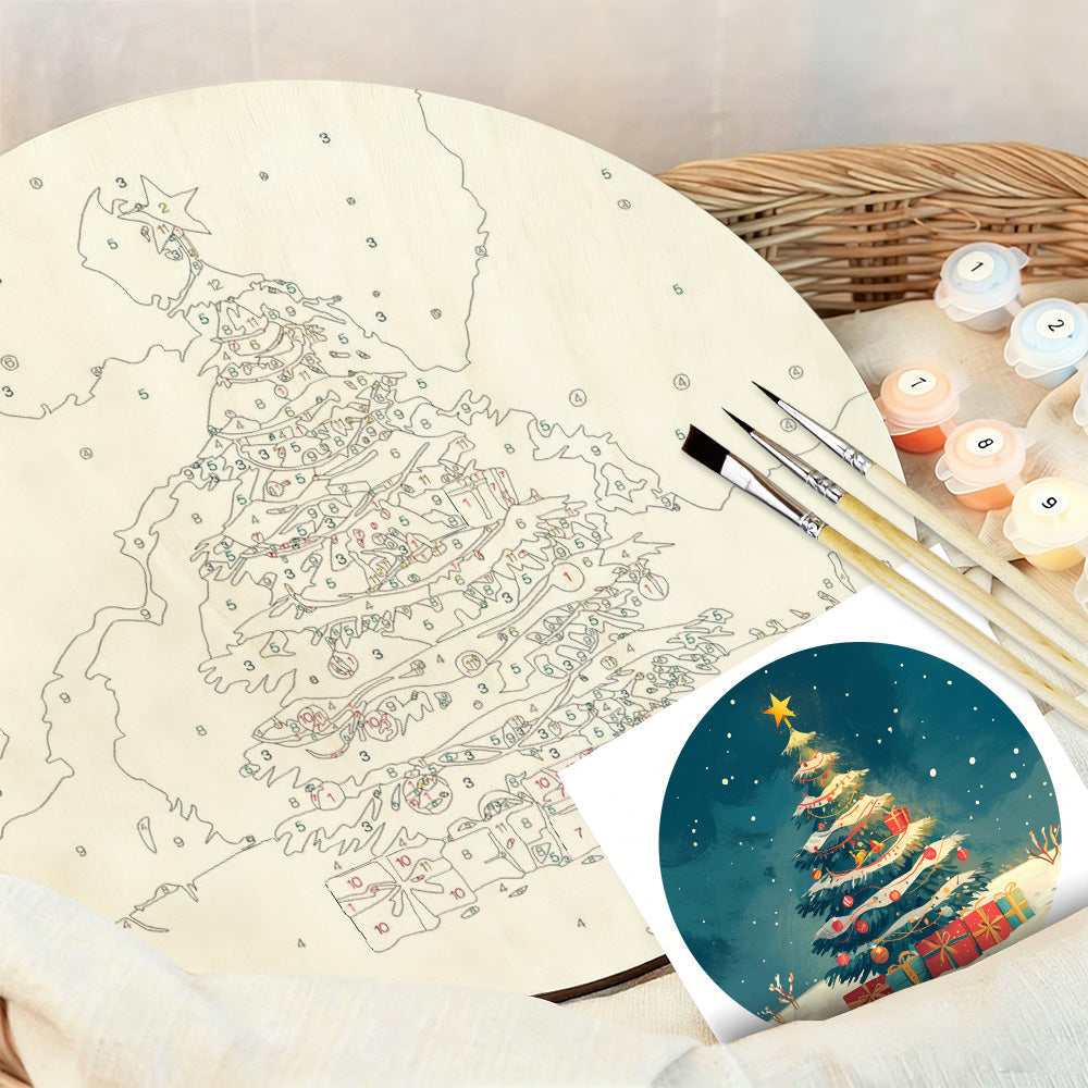 Houtschijf Schilderen op Nummers - Kerstboom en Geschenken