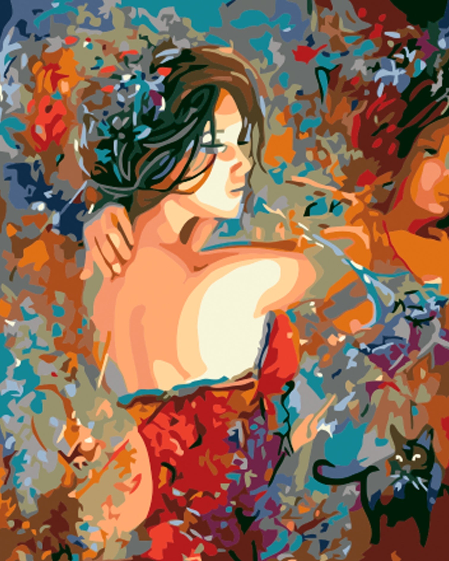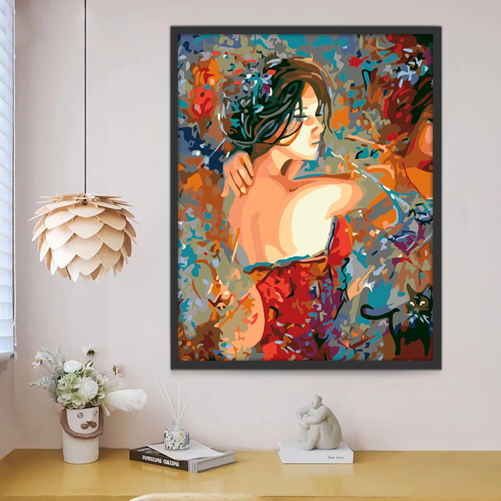 Achterkant van een Vrouw in een Rode Jurk Schilderen op Nummers
